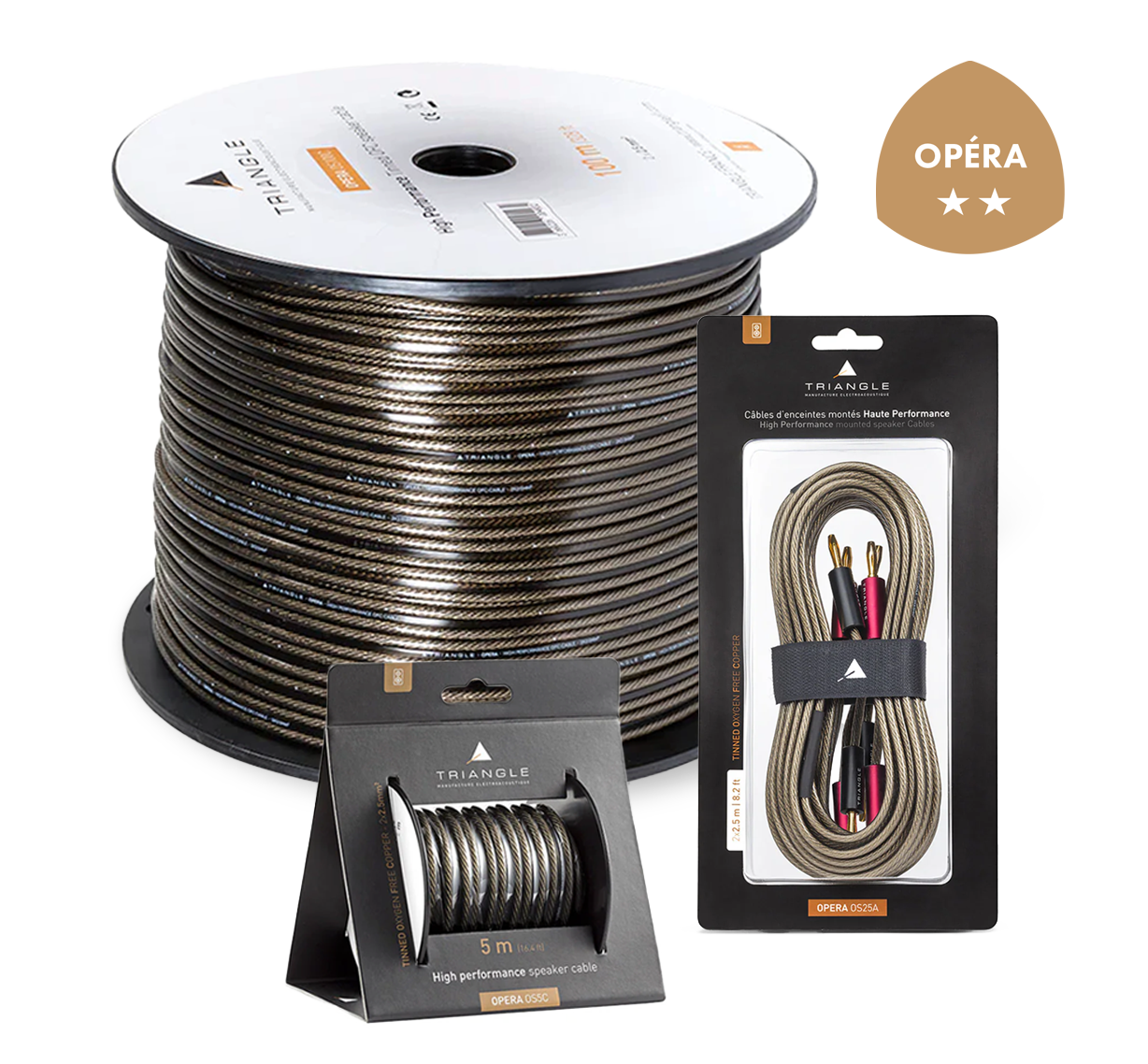La gamme OPÉRA propose des câbles conçus pour garantir des connexions fiables et accessibles dans tout système Hi-Fi ou Home Cinéma. Disponibles en version prémontée ou en bobine, ils sont fabriqués à partir de cuivre désoxygéné étamé et protégés par une isolation souple en PVC.