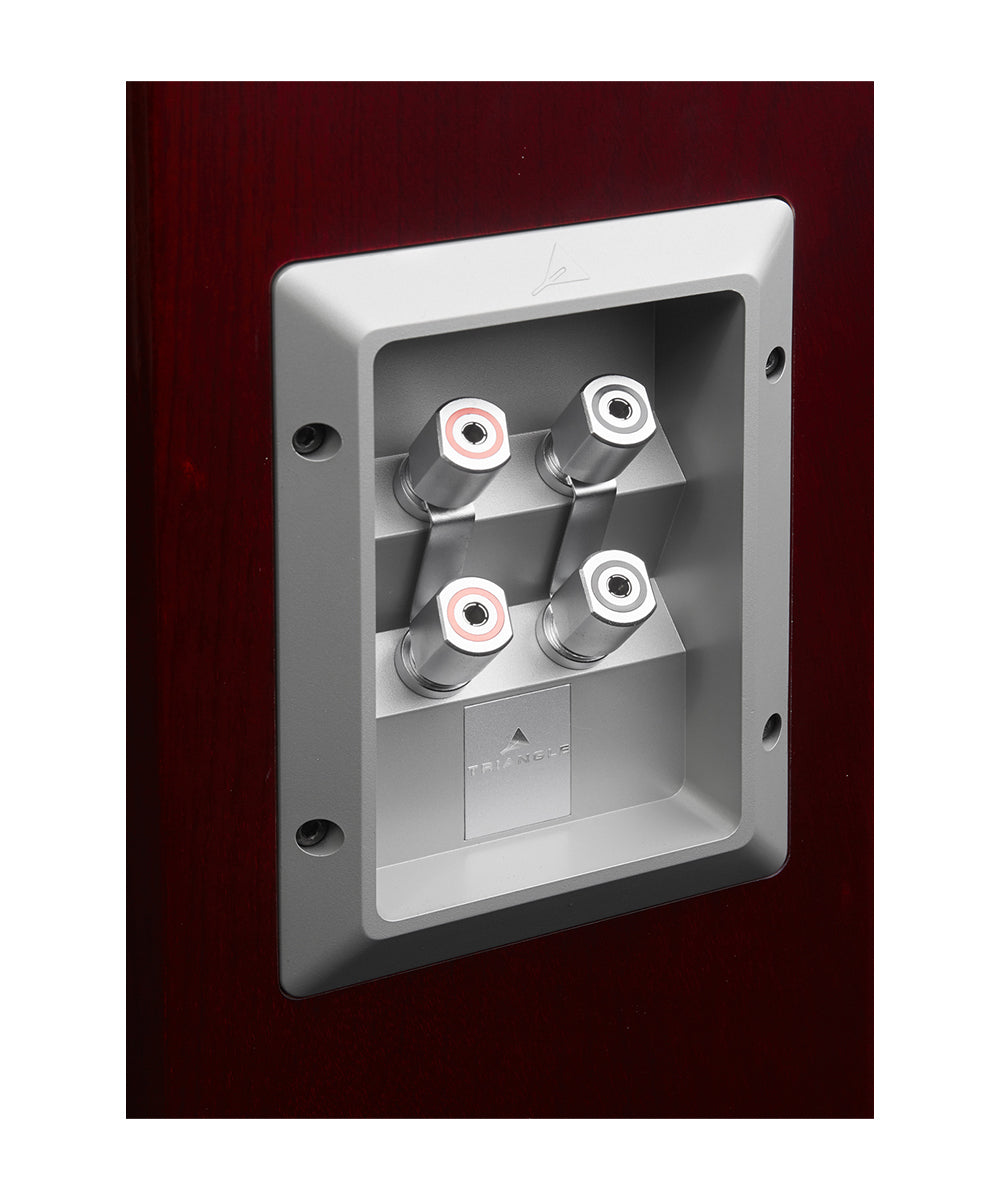 Tous les modèles de la gamme proposent un bornier permettant bi-câblage ou bi-amplification. Les bornes sont également une réalisation TRIANGLE. En alliage à forte dominante de cuivre elles assurent une très bonne conductivité.