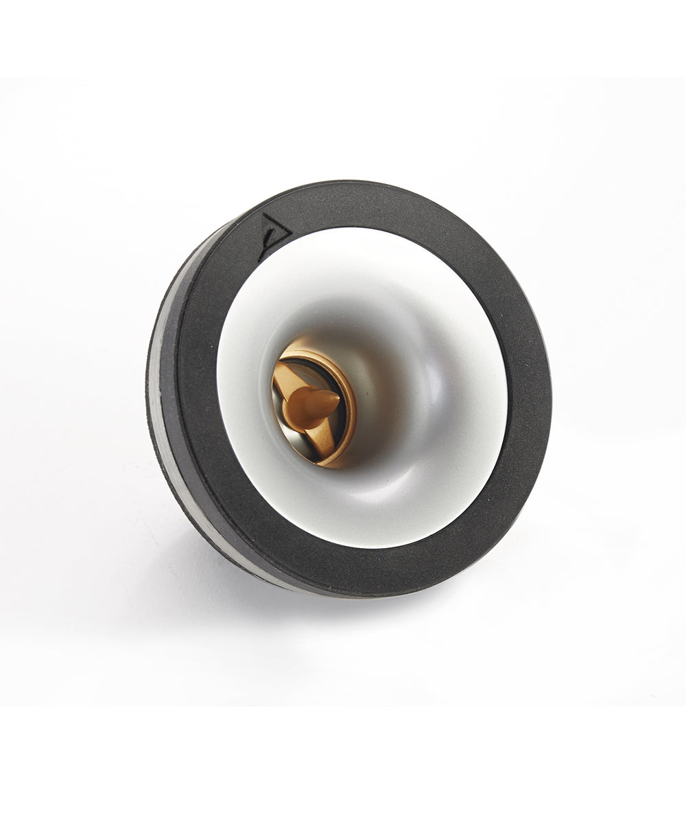 Son dôme de 25mm en titane est accompagné d’une nouvelle pièce de mise en phase. Son nouveau pavillon en aluminium injecté, finition satin, est issu du programme Magellan et assure grâce à sa surface plus importante une meilleure dispersion des hautes fréquences. La cavité à l’arrière du tweeter a également été revue, l’augmentation du volume de compression permet un meilleur amortissement évitant ainsi le retour des ondes arrière sur le dôme.