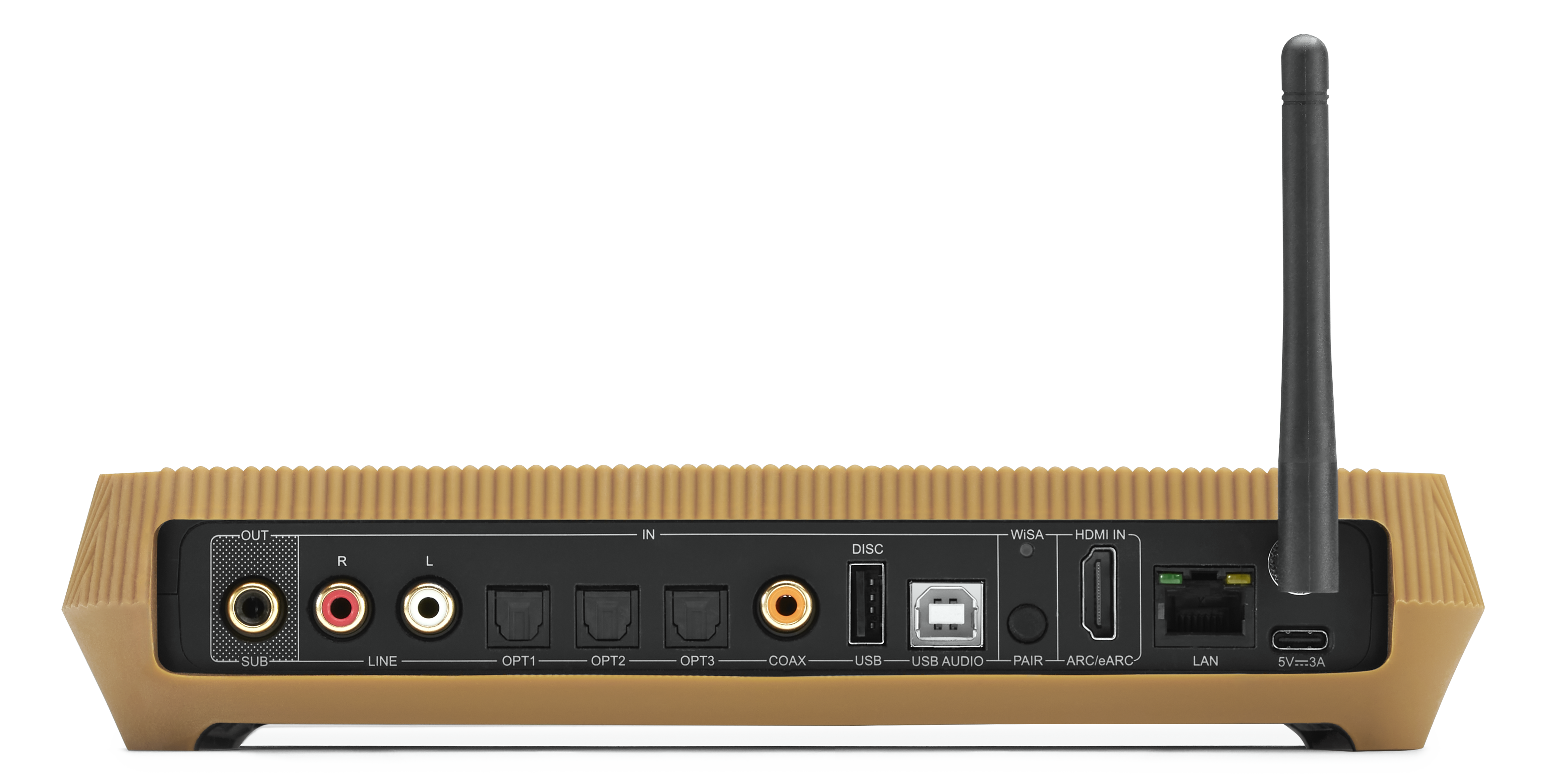En complément de ses connexions sans fil, CAPELLA 2 dispose de nombreuses entrées filaires afin d'y relier TV, platine vinyle, lecteur CD et bien plus ; pour une expérience complète au quotidien.