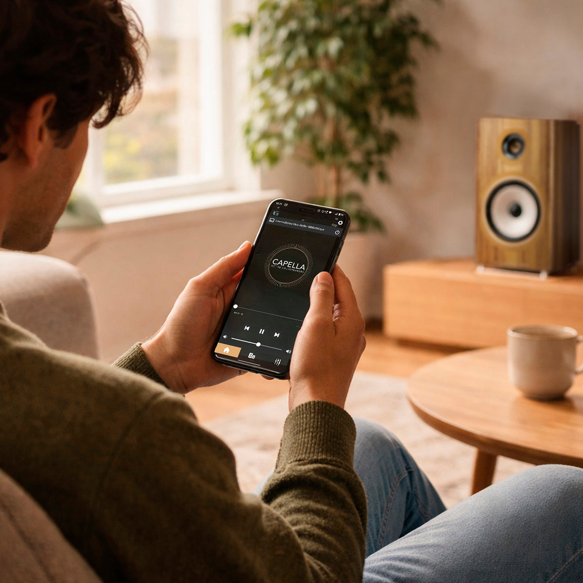 Les CAPELLA 2 intègrent les connectivités sans fil Bluetooth 5.2 et Wi-Fi, pour une diffusion simple et rapide depuis un smartphone, une tablette ou un ordinateur, jusqu’en très haute définition 24 bits / 192 kHz.
