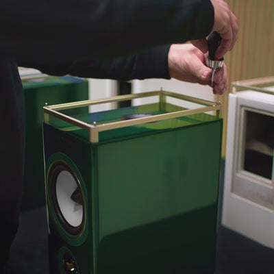 Un vert profond et sophistiqué, dont la surface laquée offre des reflets subtils et met en valeur les lignes de l’enceinte. Une finition nouvelle, raffinée et prestigieuse au style affirmé.