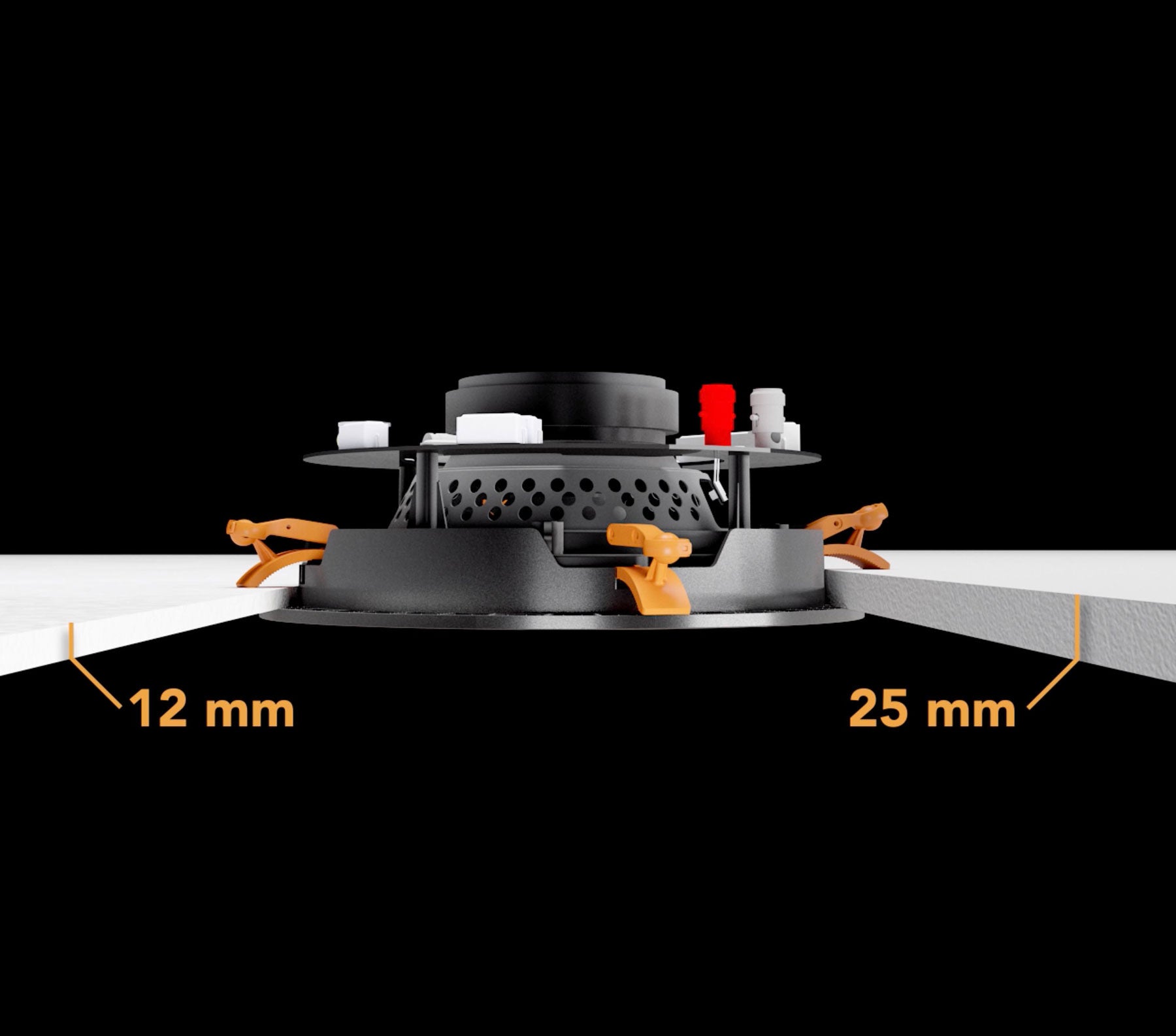 L’EMT7 est compatible sur des parois de 12 à 25 mm d’épaisseur pour une intégration universelle dans les intérieurs.