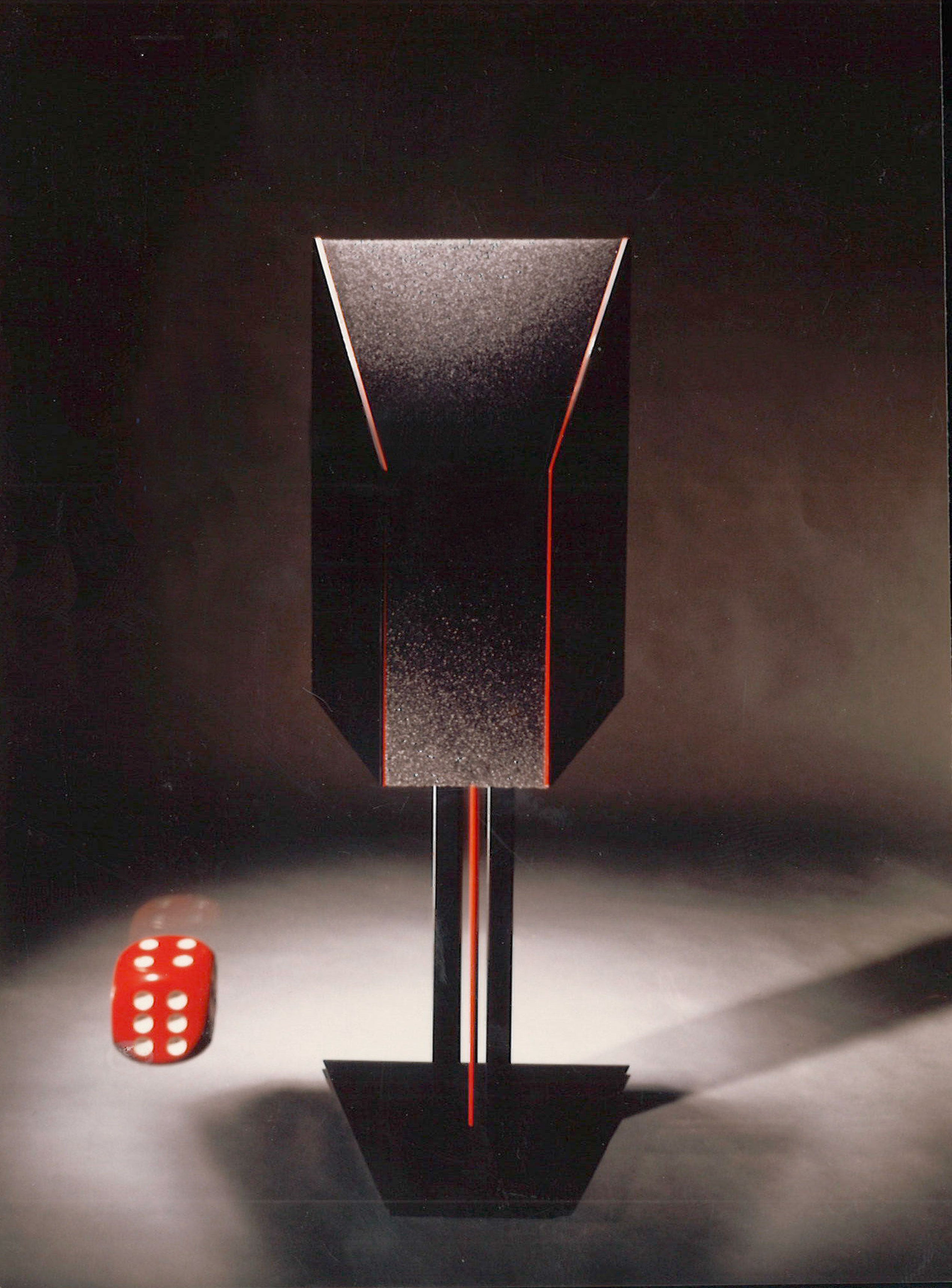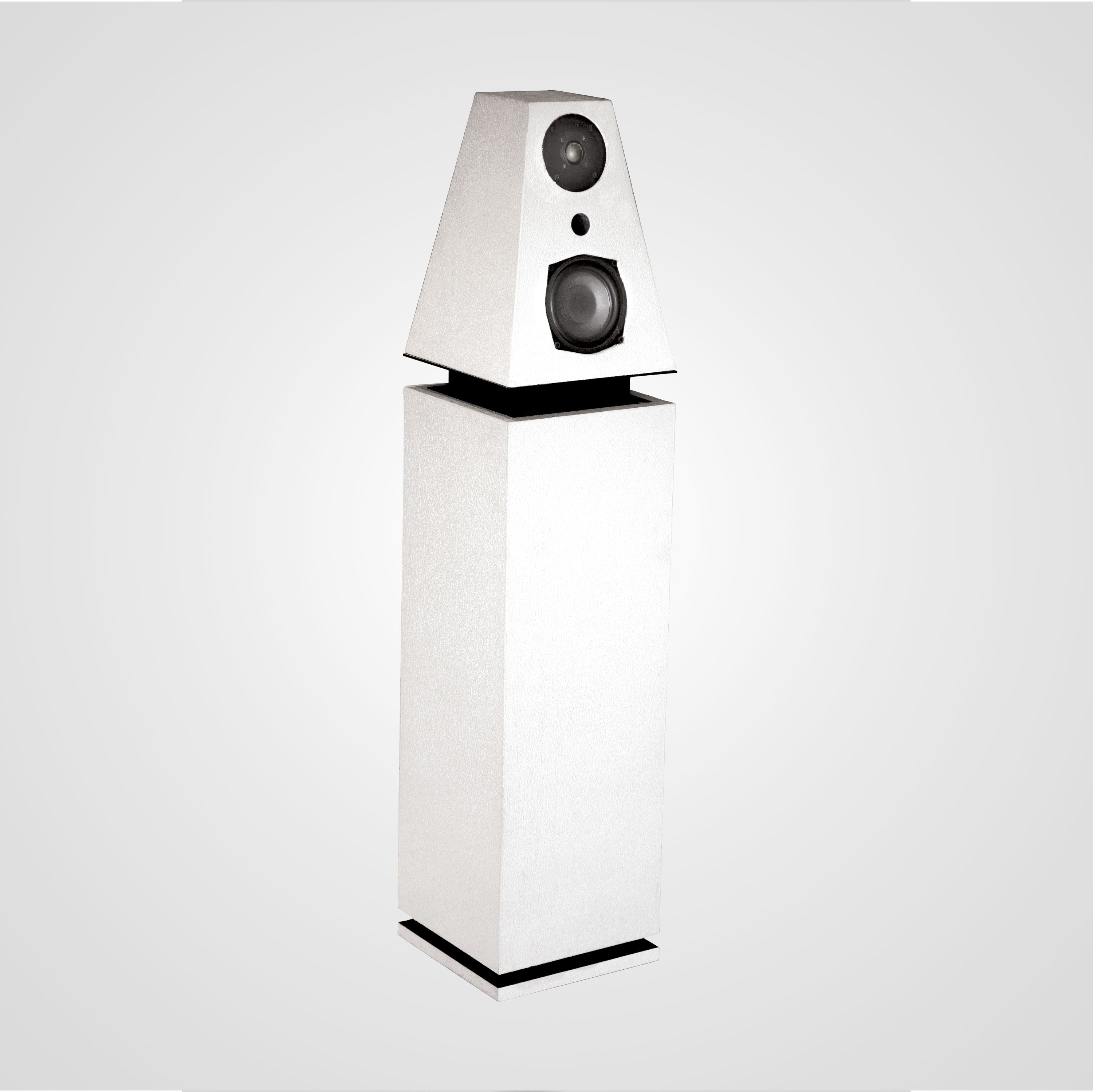 Paris, 1980, Renaud de Vergnettes wanted to break through as a designer of high-fidelity speakers, and prepared an innovative new model with a two-module structure: a woofer cabinet decoupled from the pyramid-shaped upper midrange and treble section. Renaud thus expresses his desire to sculpt elegant, acoustically high-performance sound objects.