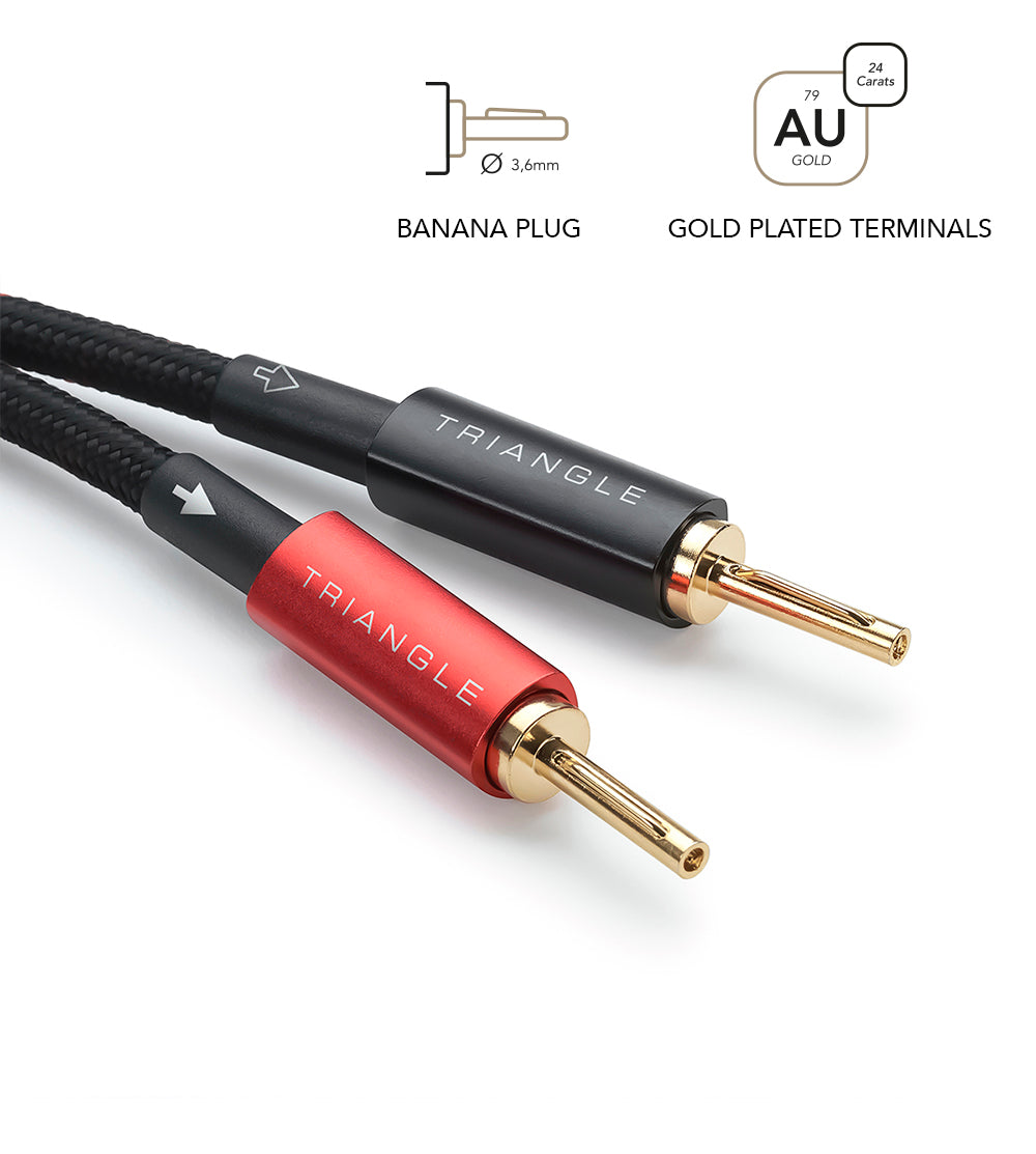 Each cable is equipped with standard 3.6 mm gold-plated banana plugs to ensure stable and durable contact. They incorporate a spring clip for optimal hold in the terminal blocks, for a reliable and effortless connection.
