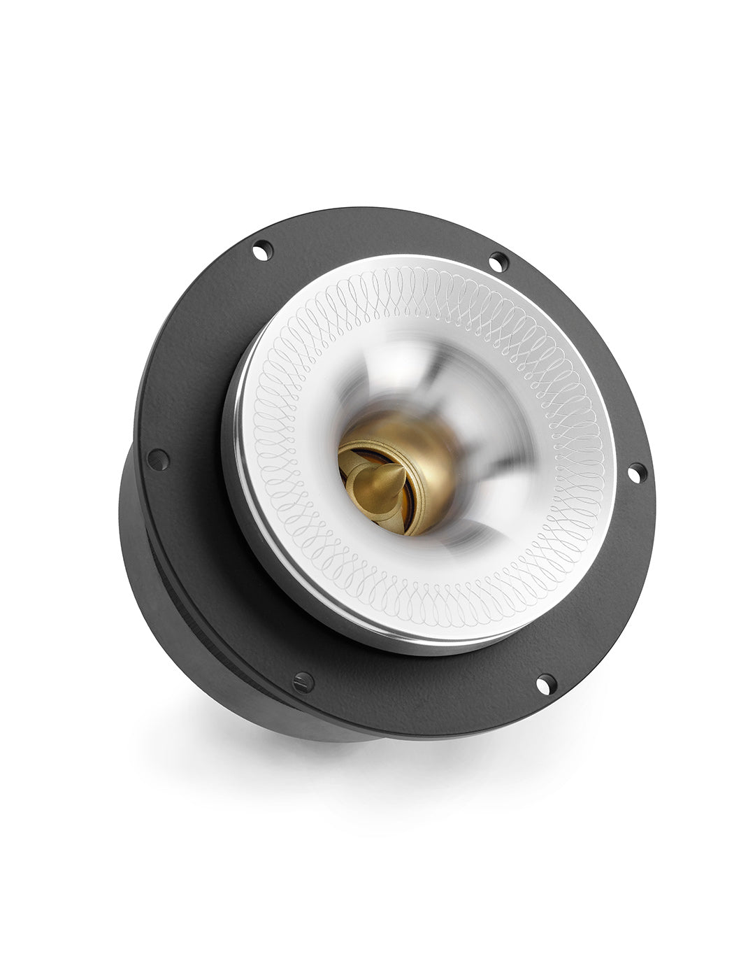 It provides the ideal combination of mass damping and rigidity to the moving coil. The driver thus handles strong impulses without distortion.