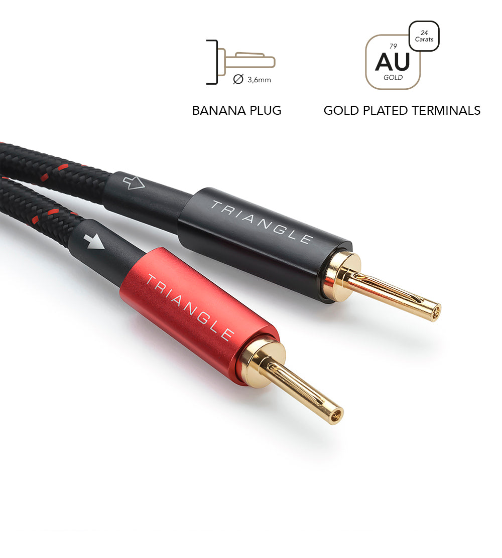 RED pre-mounted speaker cables embody TRIANGLE's high standards and offer a sophisticated solution that meets the expectations of even the most discerning audiophiles. Designed to provide a high-quality connection between an amplifier and a pair of passive speakers, they ensure remarkably stable and accurate signal transmission.